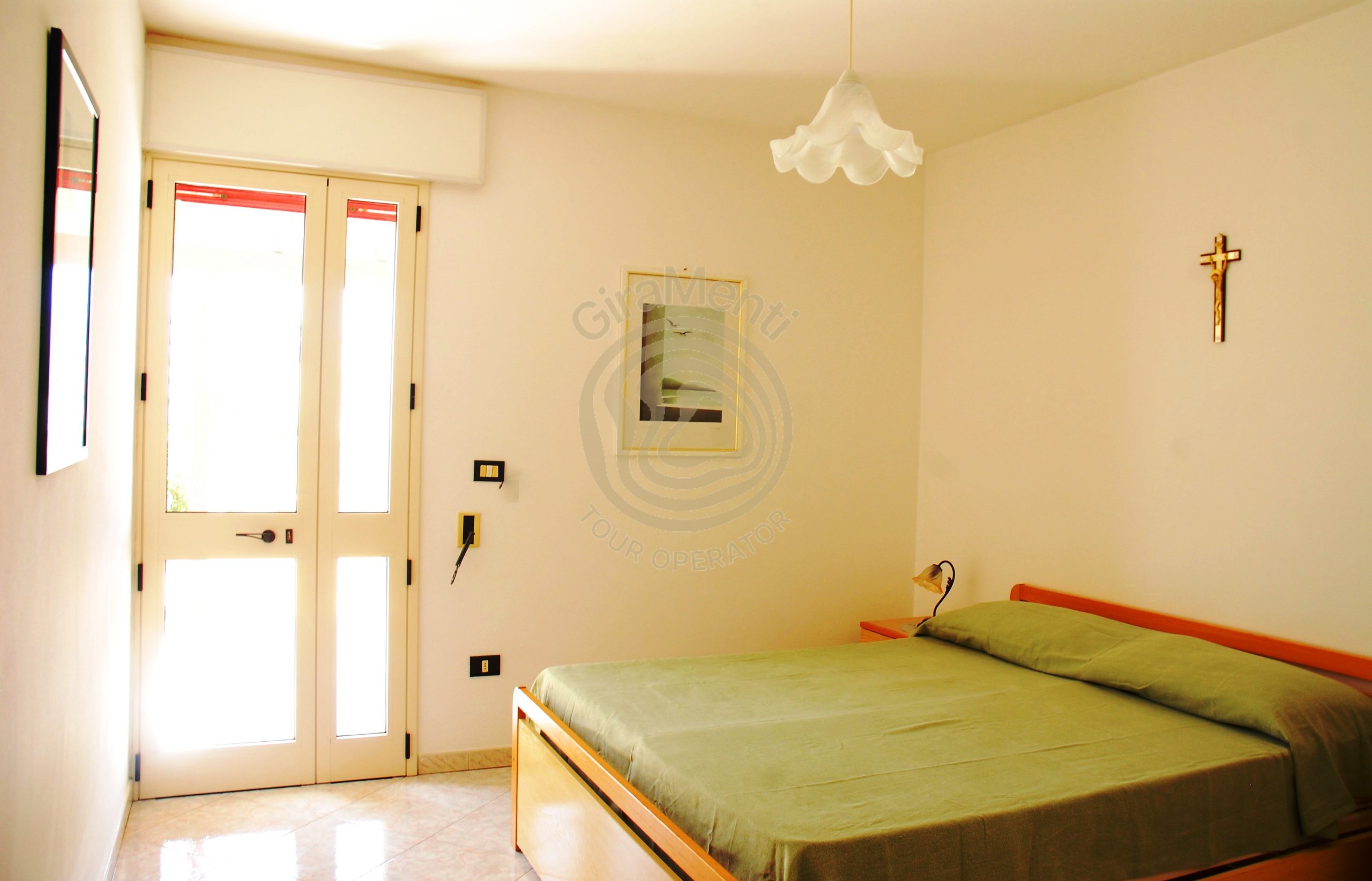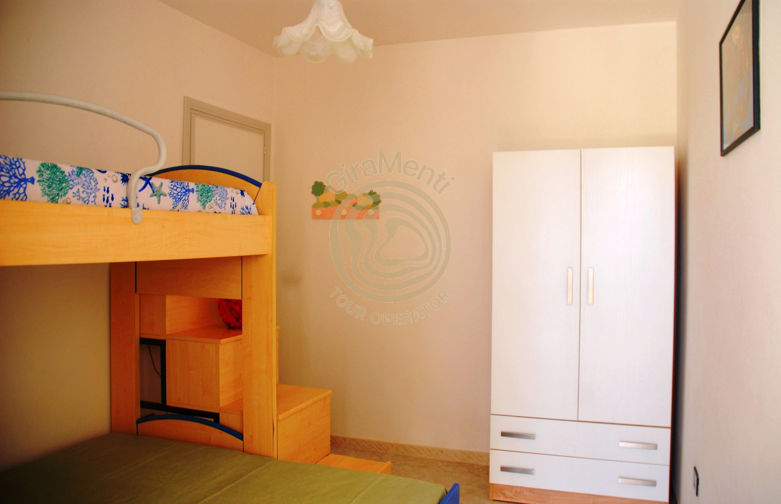 Gli spazi interni si articolano in: una cucina, una zona giorno, una camera matrimoniale, una camera doppia ed un bagno fornito di box doccia e lavatrice.