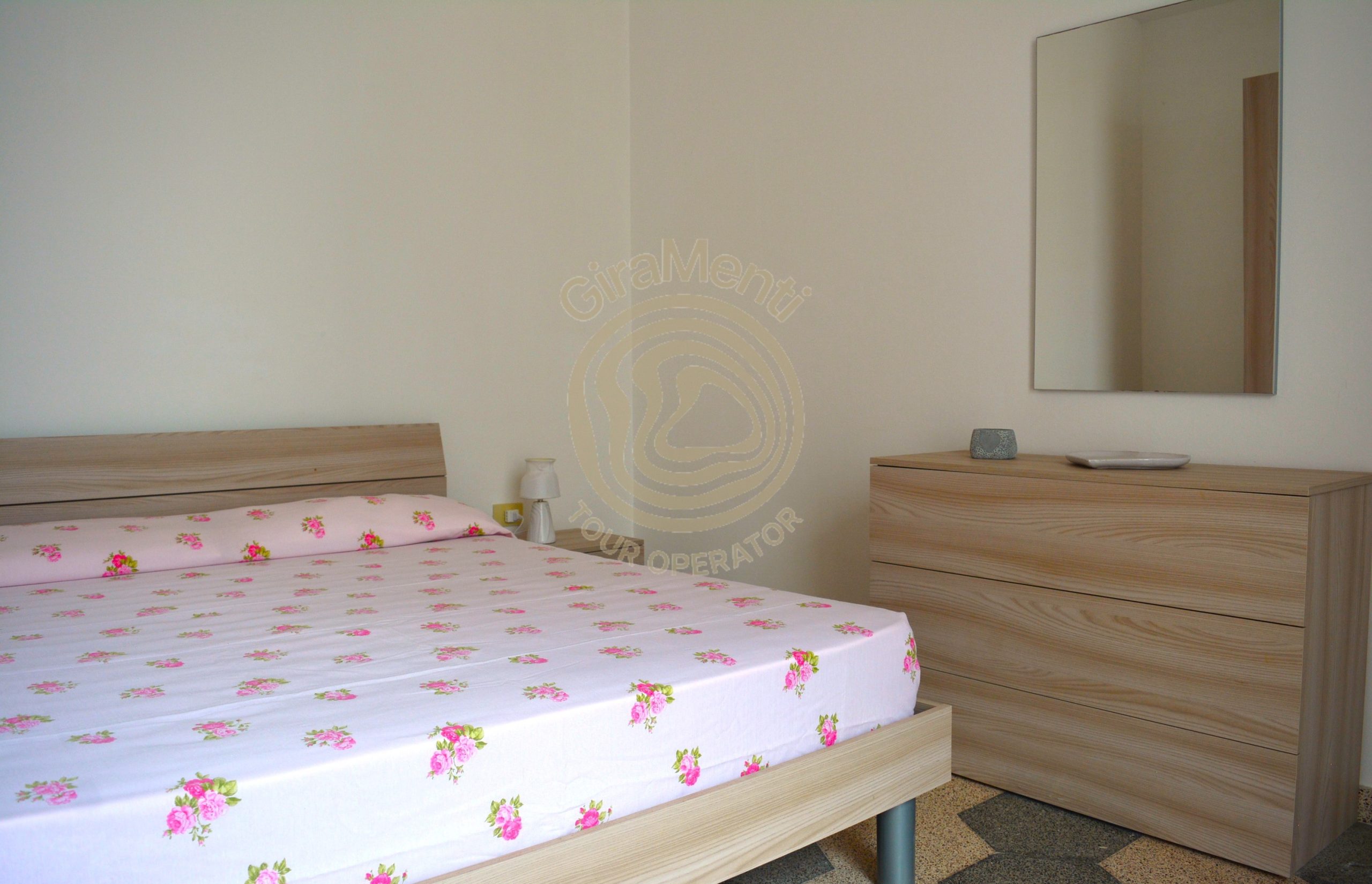 Gli interni comodi e funzionali si suddividono in un cucinino ben attrezzato, un soggiorno in cui è possibile aggiungere un posto letto, due camere matrimoniali di cui una con letto singolo aggiuntivo e con uscita su verandina retrostante e un bagno con box doccia e lavatrice.