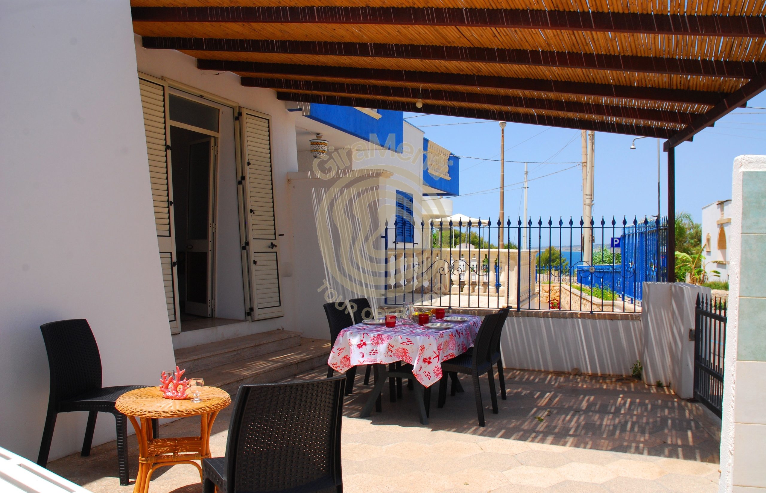 La casa vacanza esternamente comprende un cortile d’ingresso con scorcio vista mare.